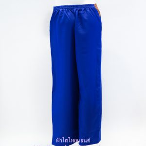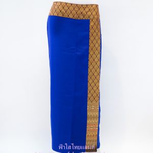 กางเกงกระโปรงผ้าโซล่อนลายไทยแถบตรงด้านซ้าย สีน้ำเงิน