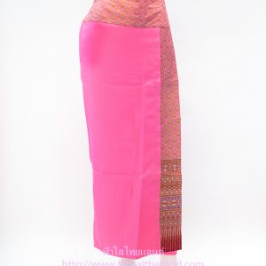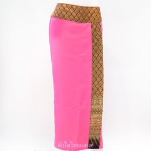 กระเปรงผูกป้ายผ้าโซล่อน แต่งลายไทยสีทอง สีชมพูเข้ม