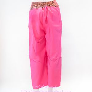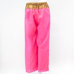 กางเกงกระโปรงผ้าโซล่อนลายไทยแถบตรงด้านซ้าย สีขลิบชมพู