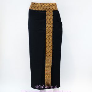 กระเปรงผูกป้ายผ้าโซล่อน แต่งลายไทยสีทอง สีดำ