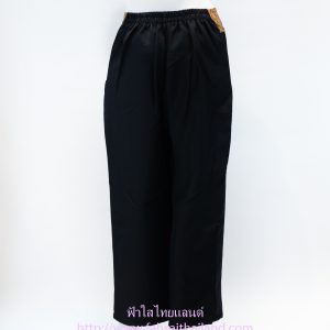 กางเกงกระโปรงผ้าโซล่อนลายไทยแถบตรงด้านซ้าย สีดำ