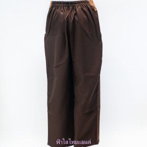 กางเกงกระโปรงผ้าโซล่อนลายไทยแถบตรงด้านซ้าย สีน้ำตาล