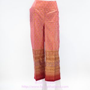 กางเกงกระโปรงผ้าโซล่อนลายไทยแถบตรงด้านซ้าย สีสันสวยงาม ใส่สบาย ซักไม่หด เหมาะแก่ชุดเครื่องแบบหมอนวดไทย นวดสปา ชุดสปา ชุดพนักงานต้อนรับโรงแรม ตัดเย็บออกแบบโดย ร้านฟ้าใสไทยแลนด์