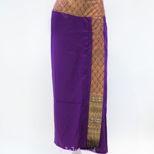 กางเกงกระโปรงผ้าโซล่อนลายไทยแถบตรงด้านซ้าย สีม่วงอ่อน